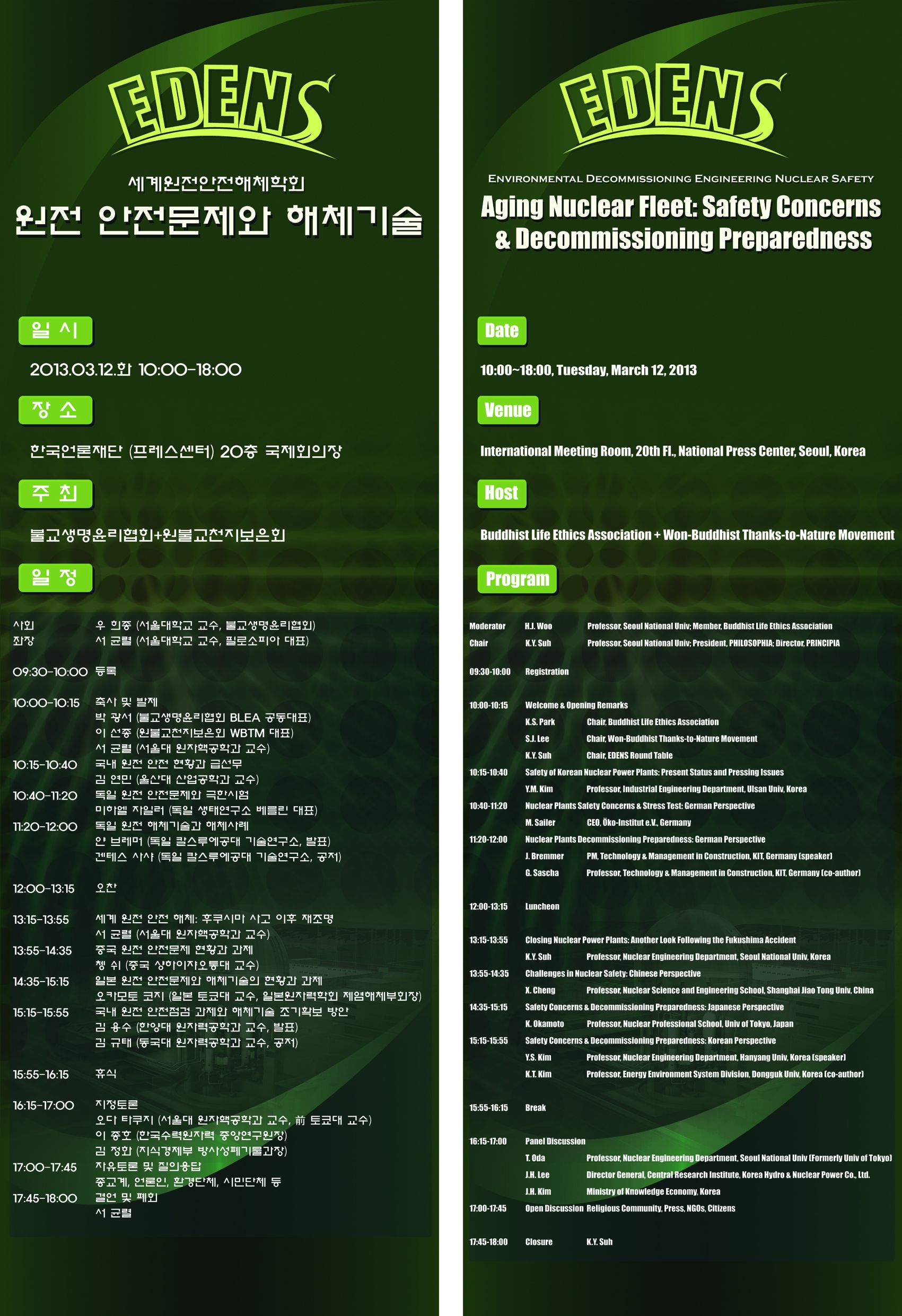 ÀÌ ¼¼¹Ì³ª´Â ¡®¼¼°è¿øÀü¾ÈÀüÇØÃ¼ÇÐȸ¡¯ EDENS (Environmental Decommissioning Engineering Nuclear Safety)ÀÇ Ã¢¼³À» ÁغñÇÏ´Â ¼¼¹Ì³ªÀ̱⵵ ÇÕ´Ï´Ù. À̹ø Áغñ¸ðÀÓÀ» ½Ã¹ßÁ¡À¸·Î ÇÏ´Â Àηù°øµ¿ÀÇ °ú¾÷ÀÔ´Ï´Ù.