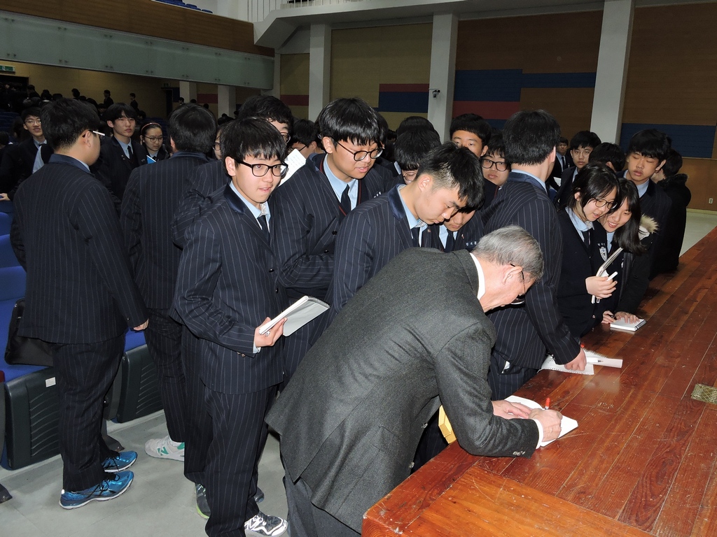 Ư°ÀÌ ³¡³ µÚ ¼±»ý´Ô »çÀÎÀ» ¹ÞÀ¸·¯ ±æ°Ô ´Ã¾î¼± ÇлýµéÀ» º¸°í ¿¬¿¹ÀÎÀ» ´É°¡ÇÏ´Â ¼±»ý´ÔÀÇ Àα⸦ Àý°¨Çß½À´Ï´Ù.