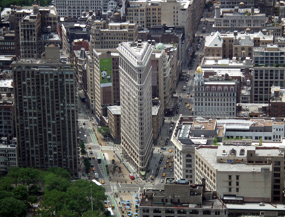 °¡¿îµ¥ »ï°¢Çü ¸ð¾çÀ» ÇÑ ºôµùÀº Flat Iron BuildingÀ̶ó°í ºÎ¸£´Âµ¥, ´Ù¸®¹Ì °°ÀÌ »ý°å´Ù°í ÇØ¼ ºÙÀº À̸§Àΰ¡ º¾´Ï´Ù.